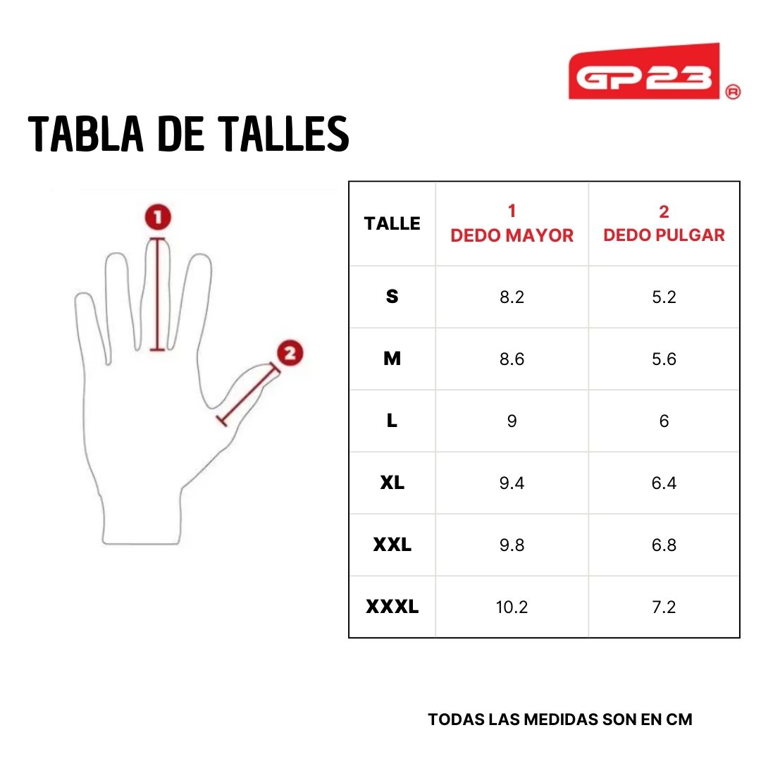 - Protecciones semirrígidas en puños, dedos, palma reforzada.